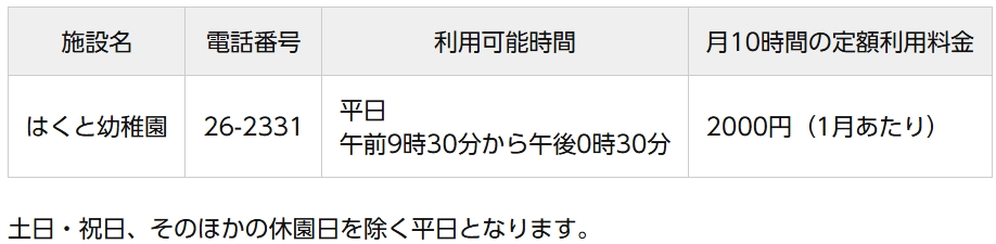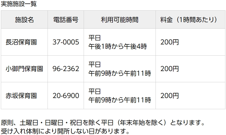 ※公立保育園については生活保護世帯は無料。また、条件を満たした場合は、利用費の一部を補助する制度があります。 成田市一時預かり事業利用者補助金_成田市ホームページ