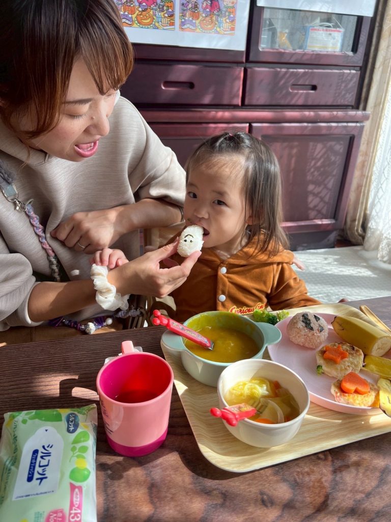 「皆さん、自分のご都合がいい時間で参加していただいてます。出入り自由です!赤ちゃん食堂は、11時より離乳食提供になりますので、その前にはお越しいただけるようお願いしています。」